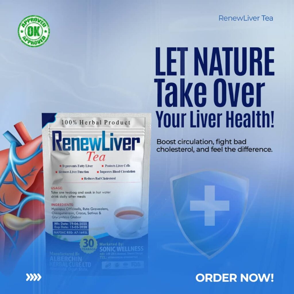 We Bring this Amazing RenewLiver Tea to Help you manage your Liver Naturally with No Side Effects. It is NAFDAC approved.